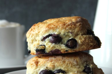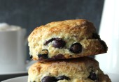 Испеките к завтраку или к чаю булочки на пахте с миндальной пастой и свежей черникой.