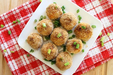 Отменная закуска для любого случая. Шарики с мягкой сладкой начинкой и хрустящей сырной оболочкой.