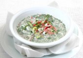 Окрошка - традиционное блюдо русской кухни, представляющее собой холодный суп из мелко нарезанных овощей и трав.