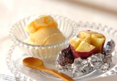 Печеный сладкий картофель в фольге. Подается горячим, холодным,а также с ванильным мороженый.