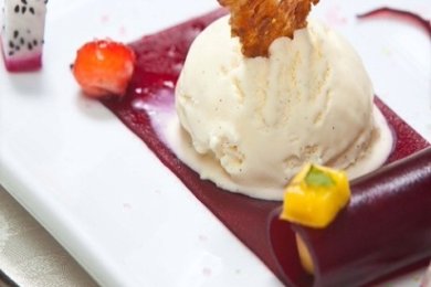 Ванильное мороженое с кунжутно-кленовым сиропом