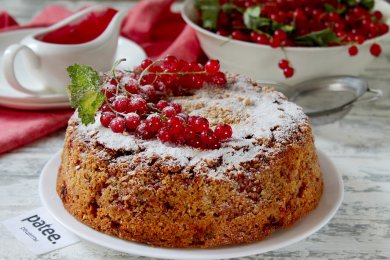 Чем больше красной смородины, тем лучше. Ягоды должны заполнить весь мякиш, пропитать ароматом и освежающей кислинкой.