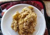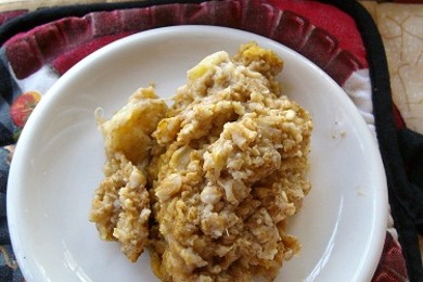 Запеканка из рубленого овса, овсяных хлопьев, тыквенного пюре и бананов.