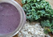 Изумительный рецепт смузи для завтрака с черникой, овсом и капустой кале.