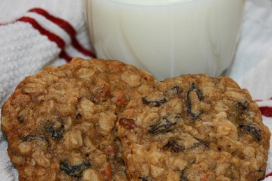 Нежное и очень полезное печенье с овсом, грецкими орехами и изюмом.