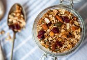 Гранола — это еда для завтрака или снэк, содержащий раскатанный овес, орехи и мед, иногда рис, которые обычно запечены до хрустящего состояния.
