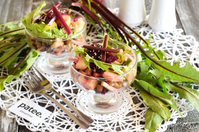 Необычный, приятный вкус сладко-солёного салата. Просто и быстро в приготовлении. Подходит к разным гарнирам, в особенности к картофелю.