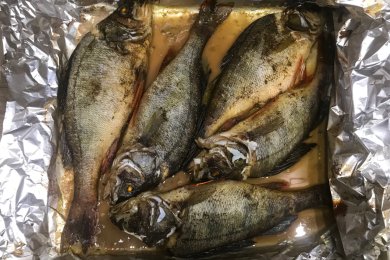 Свежая рыба с приправами, запеченная в духовке. Этот рецепт подойдет для любой мягкой рыбы, которую вы купите в магазине или… поймаете своими руками!