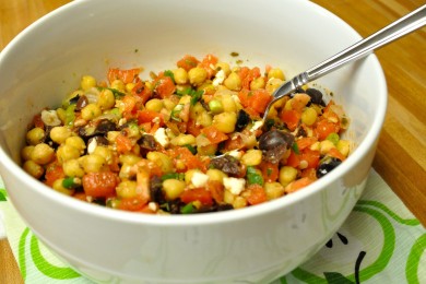 Попробуйте салат, состоящий из целого букета средиземноморских вкусов - нут, оливки, греческий сыр и специи.