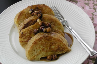 Французские тосты из булочек с ореховым сиропом пралине - прекрасный завтрак, который не займет у вас много времени.