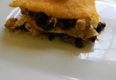 Кукурузные лепешки с начинкой из курицы, сыра, овощей и приправ, завернутые в пшеничные лепешки и обжаренные до хрустящей корочки.