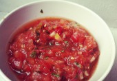 Мексиканский соус из консервированных помидоров с луком, чесноком, острым перцем халапеньо и зеленью.