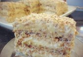 Рецепт и фото recepti.kzСочный и вкусный кокосовый торт на молоко с заварным кремом