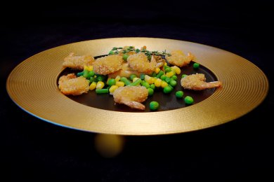 Хрустящие креветки с овощами