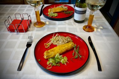 Секрет этого блюда в самой панировке. Все ингредиенты высушиваются и подготавливаются исключительно в домашних условиях.