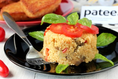 Кускус с баклажанами, сладким красным перцем и помидорами- вкуснейший гарнир, который разнообразит ваш привычный стол.