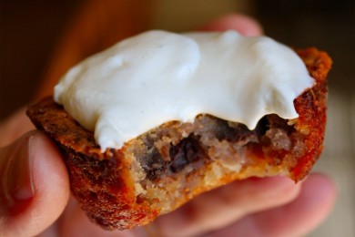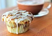 Мини-кексы на растительном масле с корицей и пеканом, покрытые сладкой глазурью. Если у вас есть форма для выпечки пончиков, можно вместо кексов испечь пончики.