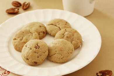 Кексы из миндальной муки с коричневым сахаром и рублеными орехами пекана.
