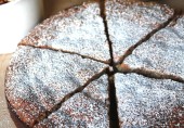 Пирог с лимонным соком и цедрой, измельченным пеканом, корицей и имбирем, посыпанный сахарный пудрой.