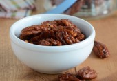 Орехи пекана свустерским соусом, яичным белком, сладкой паприкой, кайенским перцем и корицей, запеченные в духовке.
