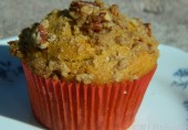 Мини-кексы с тыквенным пюре и специями, посыпанные смесью из рубленых пеканов с коричневым сахаром, маслом и мукой.