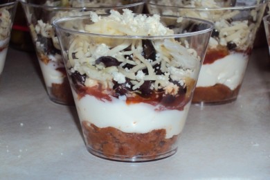 Выложенные слоями пережаренные бобы, сметана, острый соус, фасоль и сыр - и все это в отдельных креманках!  Пшеничные лепешки с сыром, консервированной фасолью, кукурузой, помидорами и авокадо.  Мексиканское блюдо - сваренная и размятая фасоль с луком и специями.