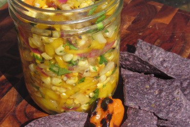 Сладкая и острая сальса прекрасно сочетается с кукурузными чипсами, жареной курицей и свининой.
