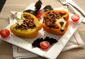 Фаршированные диким рисом, изюмом, итальянскими колбасками и специями перцы