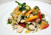 Куриный салат с авокадо и сладким перцем очень пригодится, если Вы хотите красиво использовать кусочки оставшейся курицы и попробовать что-то необычное.