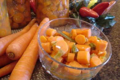 Мексиканский морковный салат с маринованным перцем халапеньо, чесноком, уксусом и специями.