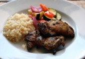 Куриное филе, маринованное в кокосовом молоке с соком лайма, соевым соусом, чесноком и халапеньо и обжаренное на гриле.