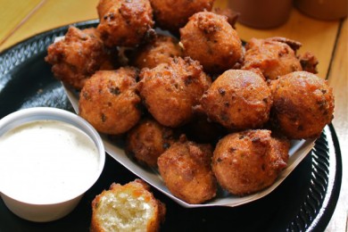 Шарики с кукурузной мукой, каджунской приправой и маринованными халапеньо, обжаренные в растительном масле.