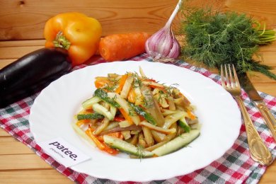 Салат с баклажанами, перцем и огурцами