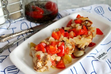Если болгарский перец предварительно прогреть в микроволновой печи, кожа сойдет очень легко. Хорошая закуска к вину.