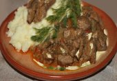 Хочу представить вам одну из вариаций русского блюда Бефстроганов – печень по-строгановски. Нежные кусочки субпродукта, поджаренного в сметанном соусе были настолько популярны и почитаемы во всех советских общепитах, что рецепт их приготовления хозяйки старались воплотить и у себя на кухне.
