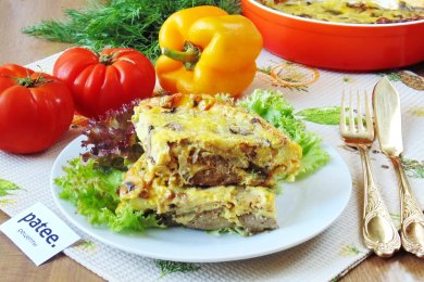 Омлет с куриной печенью и зелёным луком в мультиварке