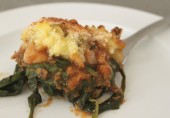 Вкусный пирог с говяжьим фаршем, ветчиной, грибами и устрицами, тушеными в пиве, красном вине и мадере.