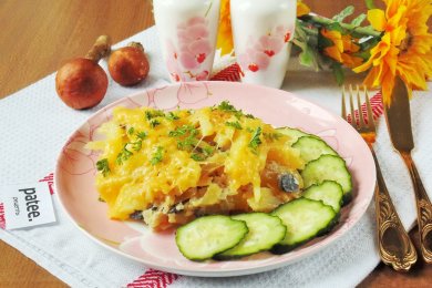 Картофельная запеканка с шампиньонами и кабачками может быть гарниром к мясным и рыбным блюдам, а также отличной закуской и самостоятельным блюдом, подавать которое лучше со сметаной или любым соусом по вашему вкусу.