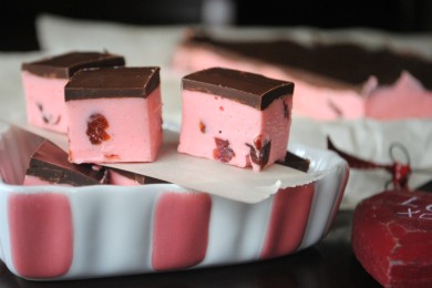 Вкусный десерт для любого праздника или вечеринки с друзьями - помадка с сушеной вишней, политая темным шоколадом.