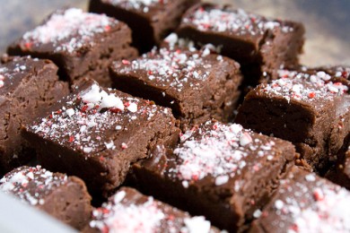 Помадка из шоколада со сгущенным молоком и ванильным экстрактом, посыпанная раскрошенными мятными леденцами.