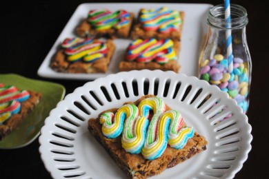 Попробуйте сладкое печенье с конфетами и шоколадом, украшенное радужной глазурью.
