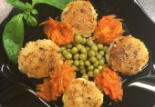 Легкие и вкусные котлеты из крабового мяса с лимонным соком, сладким перцем, зеленым луком и специями, с французским соусом ремулад из йогурта с майонезом, маринованными огурцами, каперсами и дижонской горчицей.