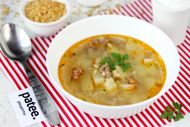 Суп с жареным фаршем и булгуром