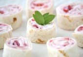 Свежая клубника в сочетании со сливочным сыром, завернутая в пшеничные лепешки.