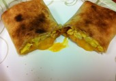 Кукурузные лепешки с начинкой из курицы, сыра, овощей и приправ, завернутые в пшеничные лепешки и обжаренные до хрустящей корочки.