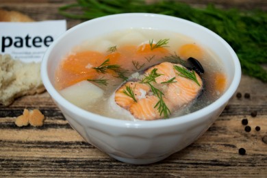 Такая уха из форели всегда получается вкусной, ведь готовится она из деликатесных видов рыб. Это может быть сёмга, форель, горбуша, кета и другие.