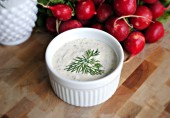 Сливочный соус Ранч с пахтой, майонезом, сушеной петрушкой и укропом, луковым и чесночным порошком, солью и перцем.