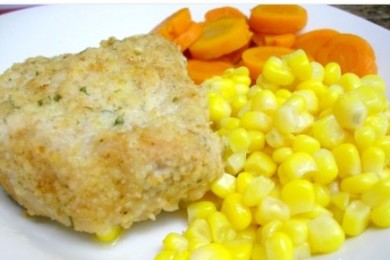 Удивительно вкусное блюдо - куриные грудки, обваленные в муке, сухарях и тертом сыре и обжаренные в масле.