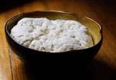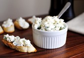 Домашний сыр рикотта из цельного молока со сливками, крупной солью и лимонным соком.