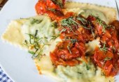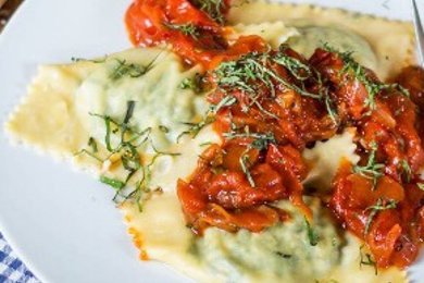 Вкусные и сытные итальянские равиоли со шпинатом, сыром рикотта, и кедровыми орехами.